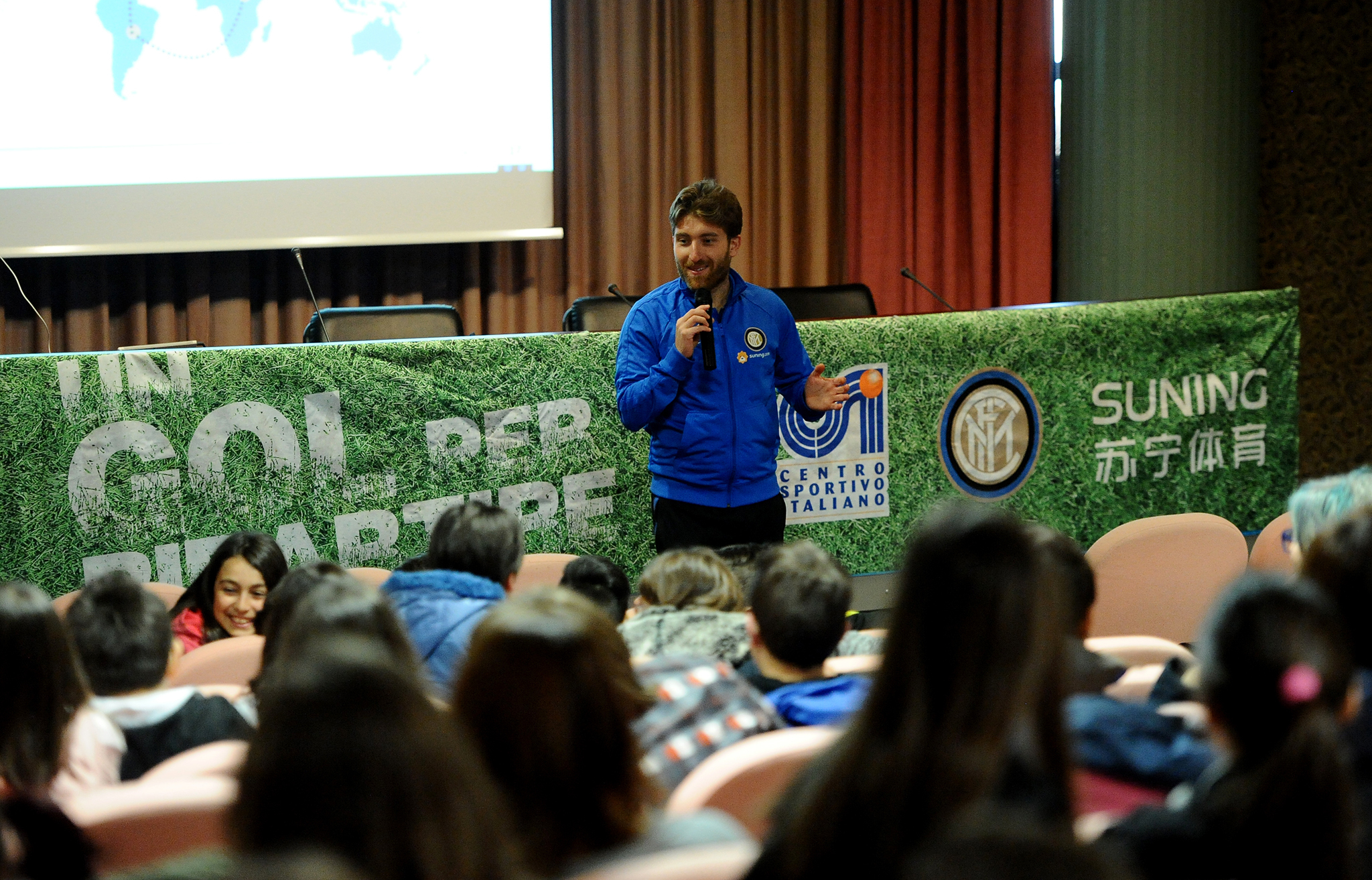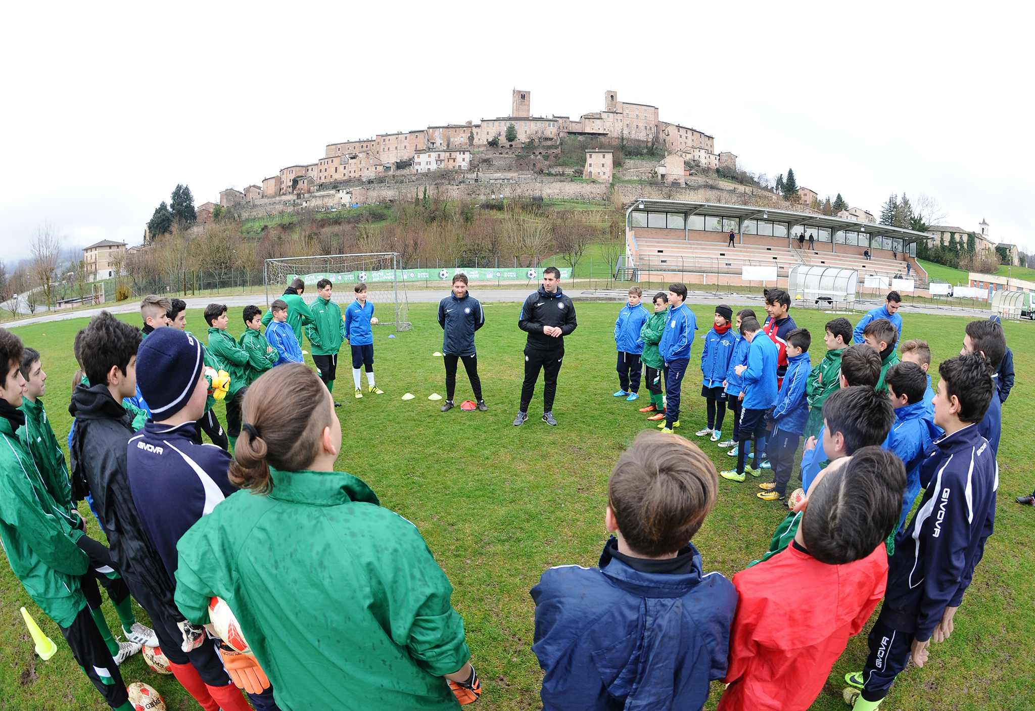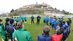 L’assist dei tre soggetti, compagni di squadra nel promuovere la campagna, ha visto ieri nel centro ai piedi dei Sibilini una ricca giornata formativa, cadenzata in tre incontri che hanno coinvolto oltre 250 ragazzi e una cinquantina di tecnici. Il primo tempo dedicato ai ragazzi, agli educatori delle scuole locali e agli allenatori delle società sportive si è tenuto al mattino presso la Sala Congressi di Sarnano in Via Benedetto Costa. Per gli alunni del quarto e quinto anno della scuola primaria e del primo, secondo e terzo anno della scuola secondaria di primo grado IC G. Leopardi, c’è stata la bella lezione plenaria su ‘educazione e calcio’. Più calcio al pomeriggio, nel secondo tempo disputato allo Stadio ‘Mauro Maurelli’ con una intensa lezione pratica in campo con circa 70 ragazzi under 14 e under 12 delle società sportive del territorio (SS Sarnano, US Tre Torri, A.S. Amandola, US Comunanza e Union Calcio S.G). Terzo tempo più tattico con la lezione serale ‘Metodologia di lavoro del Settore Giovanile F.C. Internazionale e Inter Campus’, presso la Sala Consiliare in Via G. Leopardi 1, rivolta ai dirigenti e gli allenatori degli oratori e delle società sportive marchigiane.