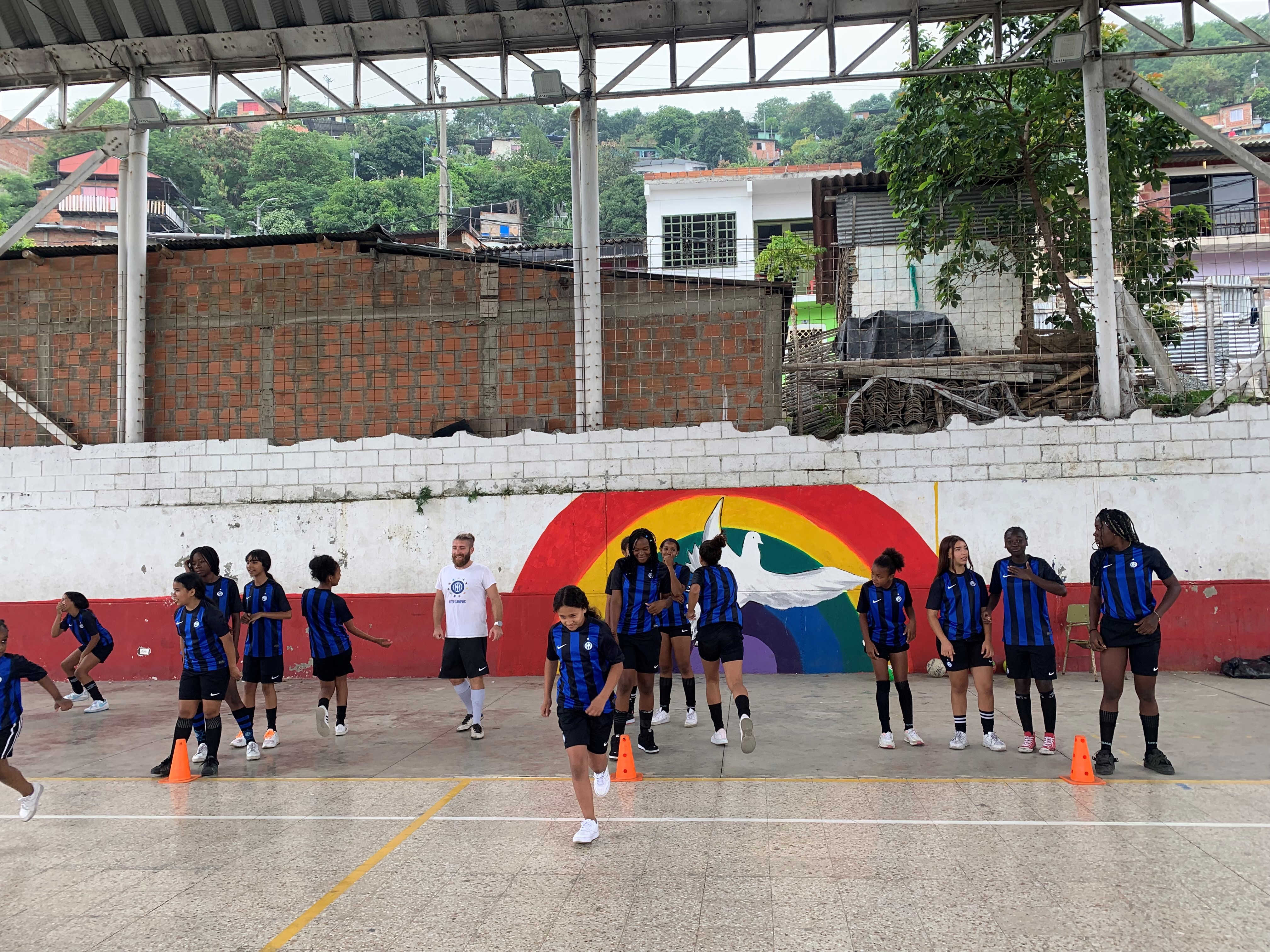 YUMBO – Arroccato sul versante ripido della montagna a nord di Cali, il quartiere di Yumbo è fatto di piccole case semplici e scalinate interminabili. La scuola si trova nella parte bassa, dove palestra e campetto sono il fulcro delle attività sportive per molti studenti. Qui si allena ogni settimana anche la squadra femminile di Inter Campus, nota per il temperamento genuino – e a volte spigoloso – delle ragazze.