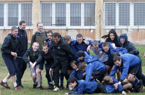 Durante questa visita è stato inoltre attivato un nuovo nucleo a Sieborowice, 20 kilometri da Cracovia, presso un istituto d’accoglienza per minori (http://www.domdzieckasieborowice.pl/). La struttura si configura come una comunità a dimensione familiare, a carattere educativo-riabilitativo, finalizzata ad accogliere minori dalla nascita ai 18 anni. Dopo un’intensa seduta d’allenamento, siamo stati invitati all’interno della casa dove le ragazze e i ragazzi hanno preparato un pranzo tipico polacco prima di ripartire tutti insieme per il campo di allenamento dove il nostro referente, Olek Kawiorski, ha organizzato una giornata di festa. Eccezionalmente, in questo pomeriggio primaverile splendeva il sole. I 60 bambini dei nuovi progetti sono stati accolti dai circa 250 bambini del quartire di Saint Edwige, tutti insieme, sul loro campo, si è svolto un minitorneo ricreativo.