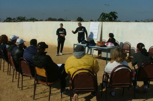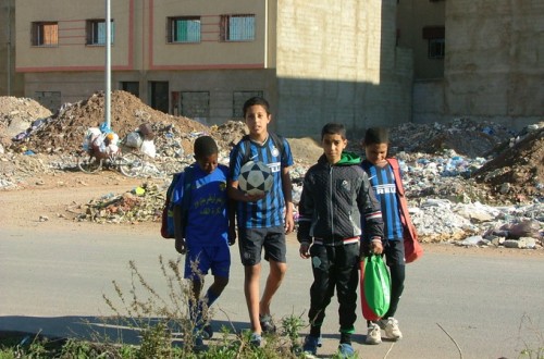 Di nuovo a Sidi Moumen, sobborgo difficile di Casablanca, la delegazione Inter Campus, che questa volta ha lavorato con 140 bambini e dieci allenatori ed allenatrici dell’associazione el Massir, sul campo che è stato finalmente recintato e salvato in mezzo alle nascenti case popolari, che si sostituiscono lentamente alle baracche.