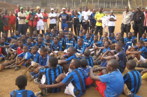 Inter Campus in Camerun prosegue nel progetto di visitare tutte le 180 cellule del programma nel Paese. Bafoussam, sull’altopiano Bamileké, la destinazione dell’ultimo viaggio. Più di 80 bambini hanno effettuato il corso di formazione con i nostri tecnici Alberto Giacomini e Raffaele Quaranta, e quasi 40 allenatori hanno partecipato ad un corso di aggiornamento tecnico terminato con un test scritto di valutazione. Grande festa soprattutto per i bambini, tre dei quali – Basil, Bebeto, Fotso – avevano partecipato alla coppa del mondo Inter Campus 2009 e si sono presentati decisamente cresciuti e orgogliosi di partecipare alle attività in questa occasione. Anche il Ministero dello Sport era presente con un saluto dei suoi funzionari locali. La prossima visita è prevista per l’estate nella zona orientale del Paese, presso la foresta equatoriale di Bertoua.