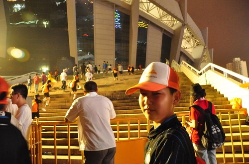 A fare il tifo per Zheng, Xiao, Cao e Lin tutti i compagni di scuola seduti dagli spalti insieme agli insegnanti della JinDing School e agli educatori della Fondazione Huituo.