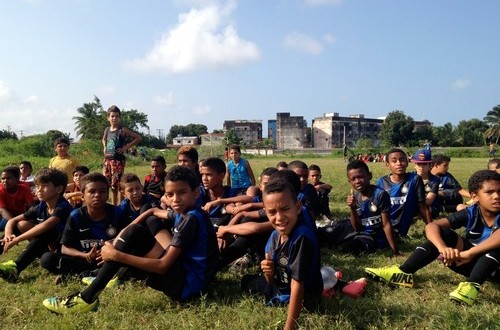 RECIFE – The Inter Campus delegation returned to the Northeast Region of Brazil, accompanied by coordinator Del Goncalves, to carry out the first of three scheduled visits in the country this season. In Recife, the capital and largest city of the state of Pernambuco, we met up with local contact Augusto, together with the group of instructors. All of them operate in the six favelas in which the project is active, involving 600 children. Inter Campus coaches Gabriele Raspelli and Andrea Galbiati oversaw the first training session, which was interrupted for several minutes due to a sudden tropical downpour.
