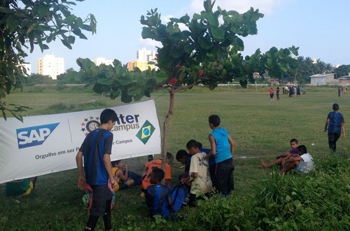 There are few paved roads that reach the outskirts of the city, where the pitch in Olinda is found, and the town consists of a cluster of makeshift buildings surrounded by lush greenery. The following day the Inter Campus staff moved on to another favela, between Olinda and Recife, which is part of the project. As per the current government policy of clearing out dilapidated areas (even if they are still inhabited), this still green area will soon become a single suburb that will permanently transform the landscape. “There were seven football pitches when I used to play here as a child,” our instructor Tarcisio Cavalcante informed us.