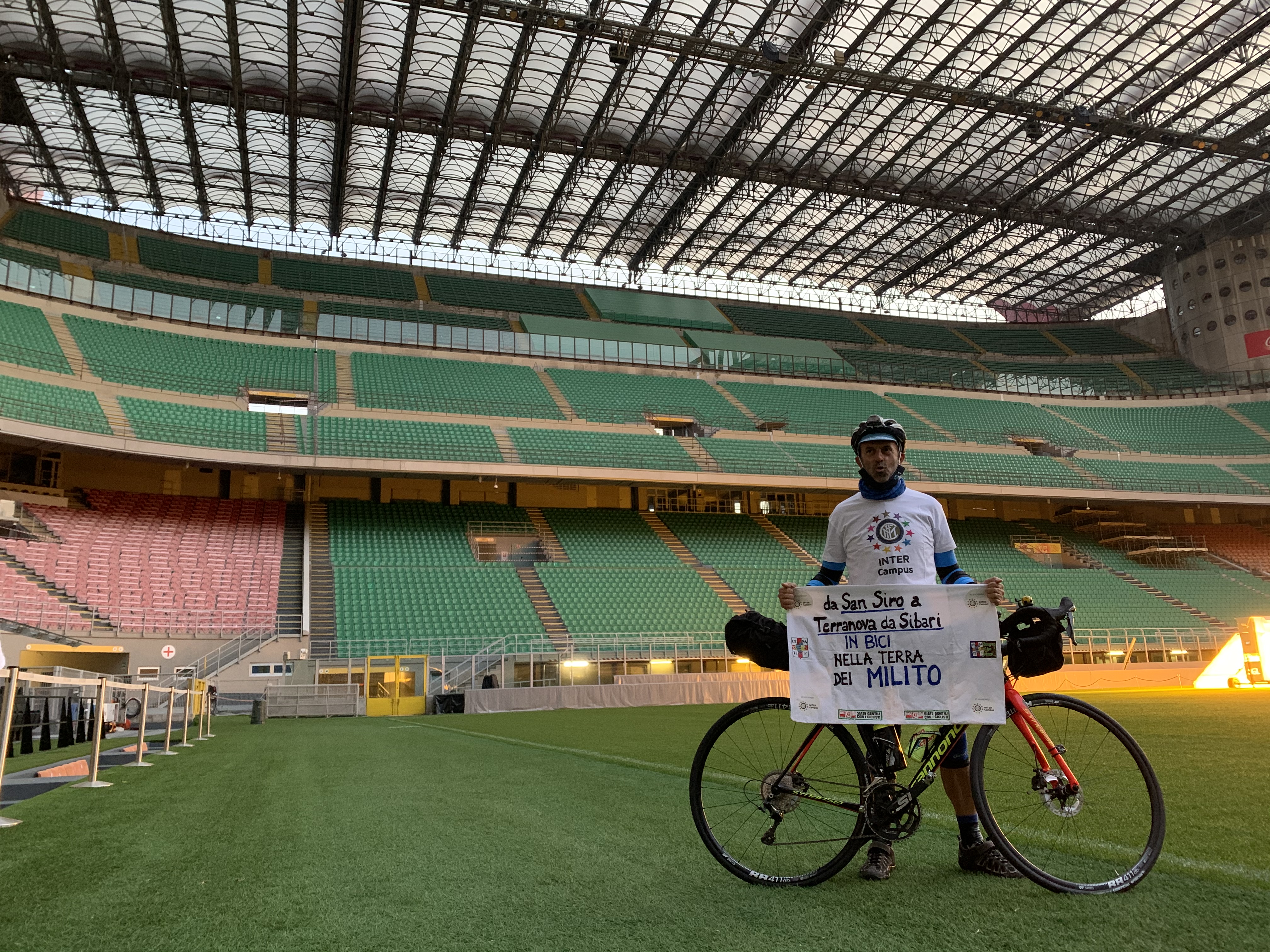 MILANO – 1.277km da S.Siro Stadio a Terranova da Sibari, paese di origine di uno degli eroi della storia nerazzurra, per respirare i luoghi natii di Salvatore e Caterina, nonni di Diego Milito, emigrati poi in Argentina. Enzo è socio dell’Inter Club Tri Basei ed è partito oggi all’alba: stima di arrivare a destinazione in 7 giorni percorrendo con la sua bicicletta tutta l’Italia. Passerà da Pontremoli, Ribolla, Viterbo, Sabaudia, Avellino e Sapri, coinvolgendo vari Inter Club lungo il suo viaggio.