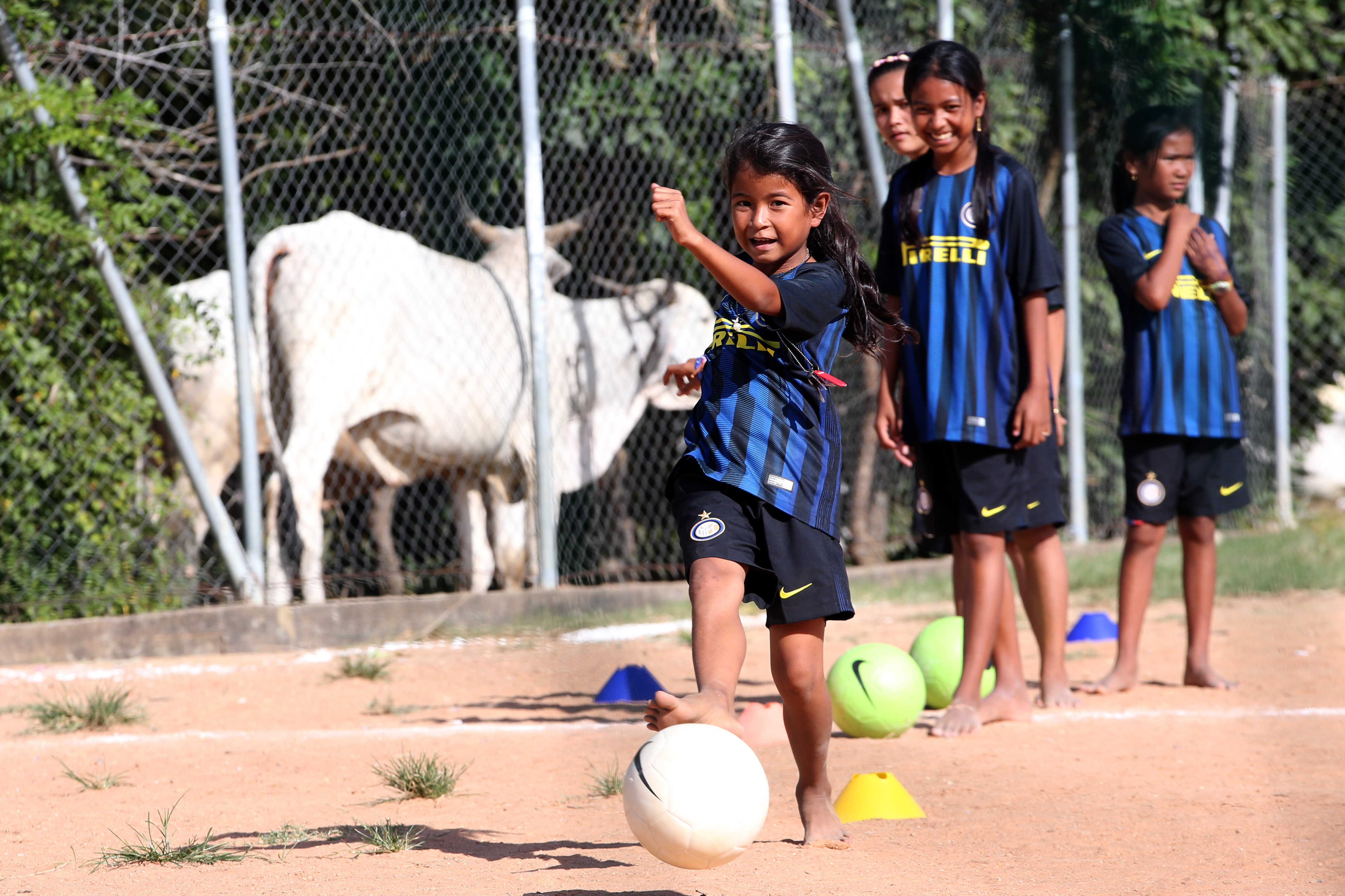 Che siano le ragazzine degli orfanotrofi o della scuola Speciale in Polonia o le bambine musulmane marocchine e libanesi o quelle che sui campi africani sfoggiano sgargianti nastri fra i capelli, le protagoniste di Inter Campus giocano con passione e indossano orgogliose i colori nerazzurri, simbolo di identità e uguaglianza.