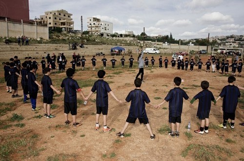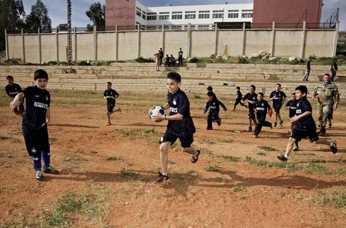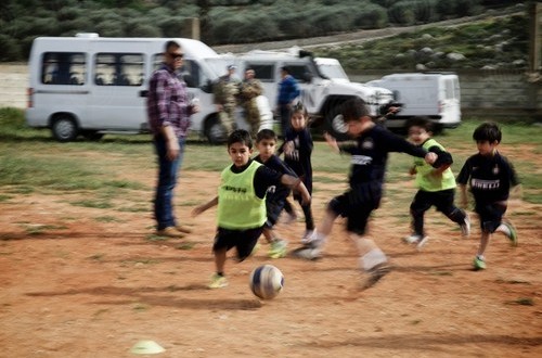 I slowly look up in the direction of laughter and giggling: the youngest boys and girls, all wearing their new Nerazzurri kit, stop. Finally the, albeit brief, opening ceremony has come to an end. The children, with their tiny voices but adult expressions, have finished singing the Lebanese national anthem, respectfully listened to the Italian anthem and thanked the military in their camouflage jackets and blue berets.